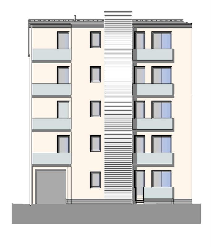 Geplant ist ein energieeffizientes und modernes Stadthaus mit 5 Geschossen und Personenaufzug. Jede Etage verfügt jeweils über eine Eigentumswohnung mit einem oder auch zwei Balkonen.